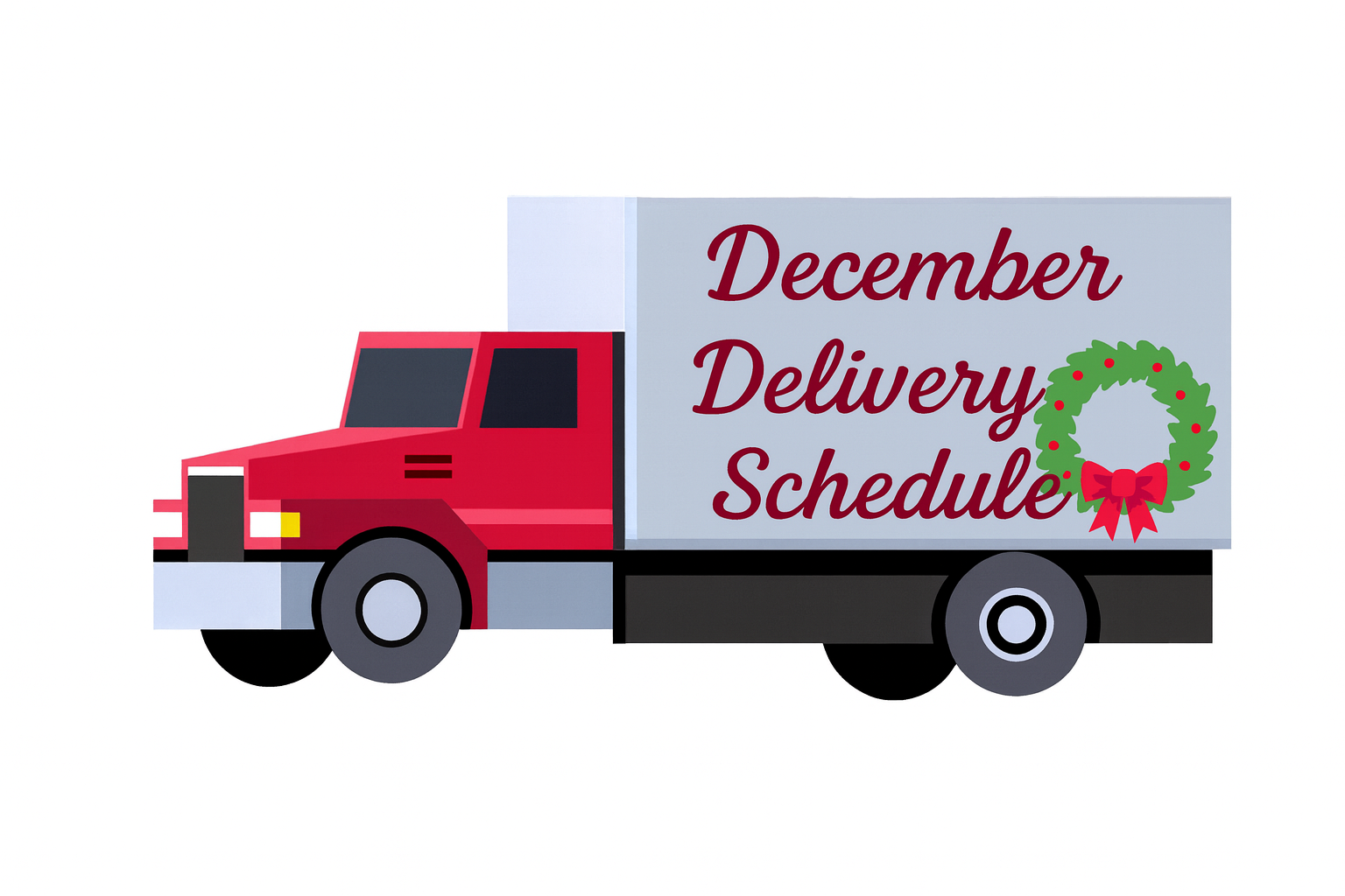 Due to the holidays, please submit all orders by 8:00 AM on the Friday prior to delivery. We will still process Monday orders, but having as many as possible submitted on Friday helps our drivers get home sooner for the holidays.